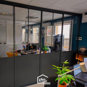 Enfin, découvrez une rénovation de bureaux, avec notamment le remplacement d'une verrière fixe par une verrière avec porte coulissante intégrée.