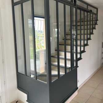 La verrière permet de séparer sans cloisonner. Elle apporte une vraie valeur fonctionnelle à l’ensemble. Autour d’un escalier, elle peut délimiter une entrée, séparer un salon d'un couloir, isoler un bureau ou même sécuriser une montée d'escalier.