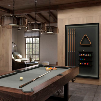 Par salle de jeux, on peut parler d’un espace pour enfants mais aussi pour adultes ! Selon votre projet, les équipements seront différents : tapis, rangements, tableau ou cabane pour les enfants, ou billard, baby-foot, fléchettes, voire un mini-bar pour les adultes.
