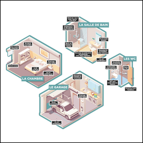 Il existe beaucoup d'aménagement possibles pour adapter votre logement, retrouvez ci-dessous quelques exemples.